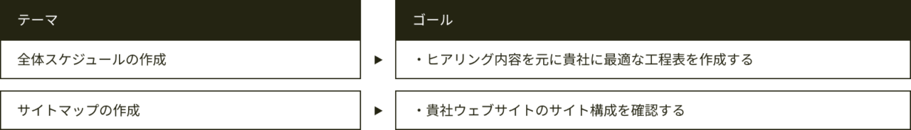 本契約後、ヒアリング内容を元に、貴社に合わせたプロジェクト設計を行います。